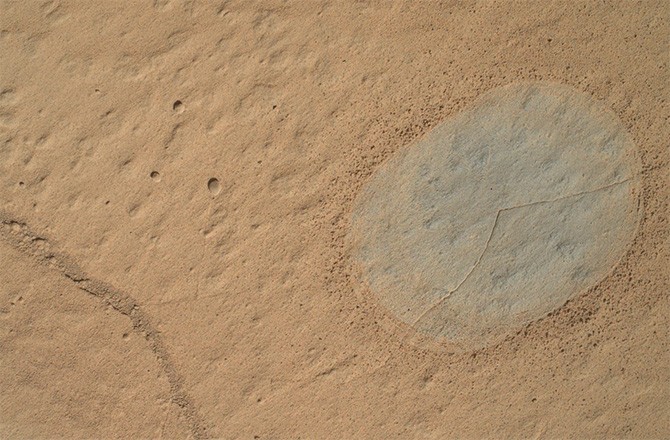 According to MSL scientists based at NASA’s Jet Propulsion Laboratory (JPL) in Pasadena, Calif., the ball isn’t as big as it looks — it’s approximately one centimeter wide. Their explanation is that it is most likely something known as a “concretion.” Other examples of concretions have been found on the Martian surface before — take, for example, the tiny haematite concretions, or “blueberries”, observed by Mars rover Opportunity in 2004 — and they were created during sedimentary rock formation when Mars was abundant in liquid water many millions of years ago.