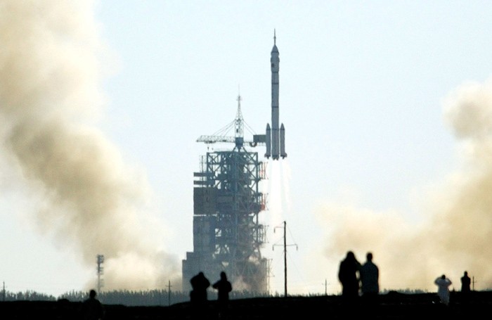 Image: The launch of China’s first manned space flight at the Jiuquan Satellite Launch Center in the northwestern province of Gansu in 2003. The Long March CZ-2F rocket carrying China’s first astronaut Yang Liwei lifted off from the Gobi Desert (China Photo/Reuters/Corbis)