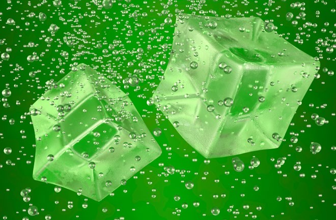 Mix everything except soda. Chill. Just before serving, add soda. You can also make some green ice cubes using food coloring and add just before serving.